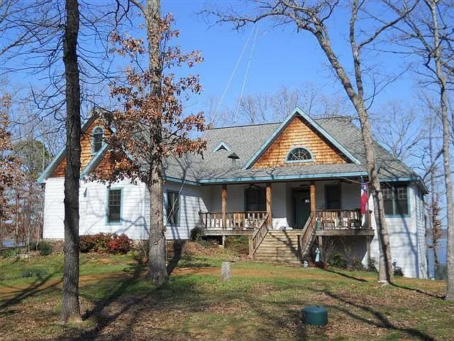 Fabulous Custom Built Waterfront home sets on 3 private wooded Acres. 304 feet of shoreline. Awesome East facing endless view for miles. There are two Master Suites each with private baths and patio doors out to the lakeside decking. Over 2000 square feet with an additional 300 sf that could be easily finished off upstairs. 3 Br, 2 Bath, double car garage, Hardy Siding. built in 2004. The Kitchen has high end stainless Dacor built in appliances and a massive marble snack bar overlooking the great room. Open, kitchen, dining and great room give that wide open bright and airy feel with a touch of class. The Wall to wall, floor to ceiling built ins in the great room are accentuated with the high Vaulted Ceilings and beautiful pine & tiled floors thru-out this home. Boathouse with party deck and lift. Many more features. Must See!