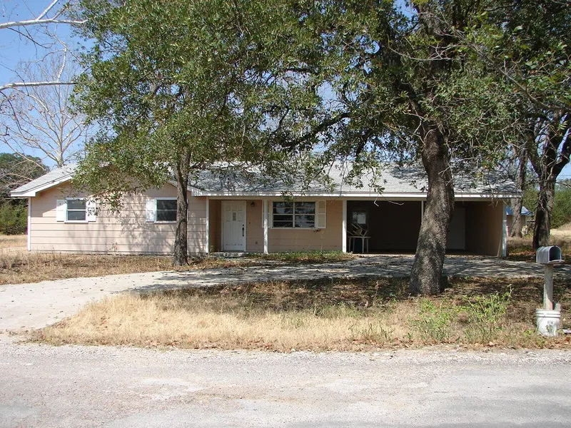 Big trees, storage building and room for livestock or a garden.