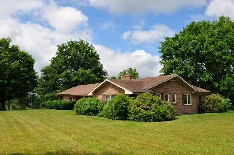 Mature pin oak and maple trees anchor the home on the knoll and are accompanied by a fruitful row of apple trees. A grape arbor, blackberries and pear tree also adorn the property.