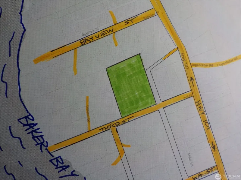 HUGE PARCEL IN CHINOOK. Over 300 feet fronting on Third St. Totally un-developed 3.2 acres with trees and brush. Includes active, paid water connection (meter not yet placed) Trail blazed in and marked. Create an RV site or homesite subject to Pacific County rules. Beach walking access at the end of street. Neighborhood contains SFR's on all sides. Partial bay view to be had from SW area of parcel. Buyer to satisfy feasibility as to their intended use. Some prelim study already done. PRICE REDUCTION