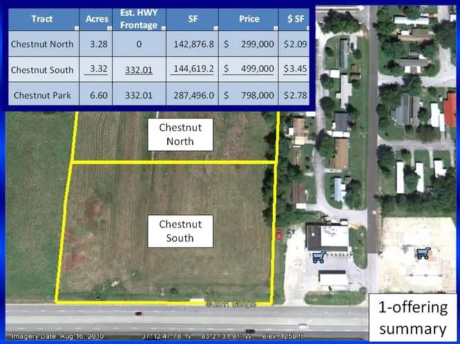 (4) Chestnut Park South. 4003 Chestnut Expressway. Ideal location for a hotel or motel. 3.32 acres (144,619 estimated SF). Zoned highway commercial (H-C). 332' estimated frontage on W Chestnut Expy. NOW $499,000 ($3.45 SF) with $670 monthly owner 2nd payment.
