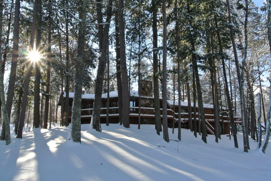 Remarkable offering on the imperial Kawaguesaga Lake (renowned Minocqua Chain) situated only 10 mins SW of downtown Minocqua. Peacefully sited at the end of the road and in an isolated bay; which is primarily composed of a Pine Forest State Natural Area. Sought-after location features a 3.35 AC tranquil setting, enhanced by the 419' of superior shoreline and expansive lake views. In addition to the boundless swimming, fishing and watersports; nearby you will enjoy hiking, biking and snowmobiling on The Bearskin State Trail. Blacktop driveway into the custom-built 4,000+/- sq ft ranch home. Exterior amenities include a 936 sqft garage, 26x30 dry boathouse with 2 track systems and a sun-deck, 2 permanent piers, wrap-around deck and a heated front entry walkway. Precious panoramic views from the liv rm and wet bar are enriched by the cathedral ceilings, majestic skylight & wood-burning fireplace. Main-floor MBR suite, office, workshop, laundry & 3-season rm. 3rd bdrm in the walkout-LL.
