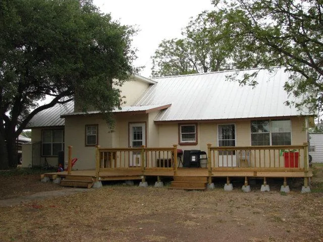 Approx 800 ft. from Spring Creek Park in Mertzon, Texas a historic two story, remodeled home sits on 3.36 acres of bottom land. 5th bedroom upstairs has closet but no windows. All other bedrooms have windows and closets. One bath upstairs and one downstairs. Net wire fenced and concrete slab with oil change station underground ready for a barn to be erected...large oak trees and patios with wood deck for entertaining or sitting under the oak canopy. The beautiful home has original banister and hard wood floors with tile in the kitchen and living areas. The spacious home has a metal roof, stucco siding, 2 car carport and workshop, Whirpool therapeutic walk-in tub. It has enclosed porches that are not included in the square footage. It sits just inside the city limits within walking distance to the grocery store, churches, excellent 1A school, track, swimming pool, roping arena, city parks and beautiful Sherwood Loop. Approximately 22 miles from San Angelo, Texas. This property has served as a second home for a family from the north as a place of business and place to live in the winter with milder temperatures. 42235-16003