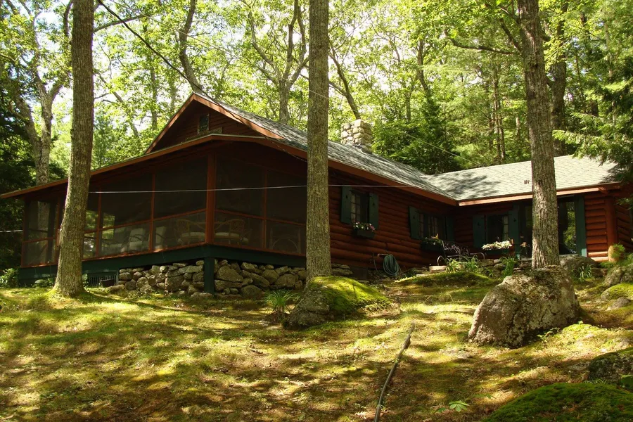 Several walking paths lead from the cabin steps through the tall pines to the boat house, patio and dock on the shore of spring-fed Heart Pond. The 73 acre pond has a maximum depth of 69 feet, a gravelly bottom, and excellent water quality for swimming, boating or game-fishing for trout and salmon. When the pond freezes there's skating, ice-fishing, skiing and snowmobiling. The camp's gravel road connects directly with the Interstate Snowmobile Trail System and a myriad of local trails for year round recreation. White-tail deer, wild turkeys, grouse, fox, and black bear are common. Moose have been spotted swimming across the pond in the fall. Calling loons can be heard from the porch most evenings.