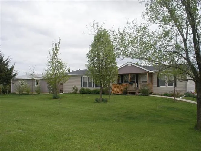 Well maintained manufactured home on 3.4 acres m/l. Funll unfinished basement with walkout. Fireplace. Oversized detached garage. Landscaped.