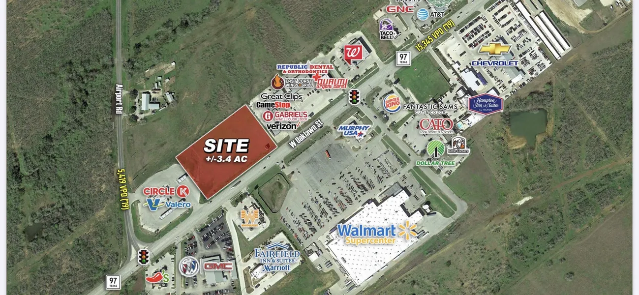 Approximately 3.422 acres of frontage on Hwy 97. Property is conveniently located across the street from Walmart and Whataburger, and next door to Valero Corner Store on Hwy 97, West Oaklawn Rd. All utilities available to the site including water, sewer, electricity and gas.