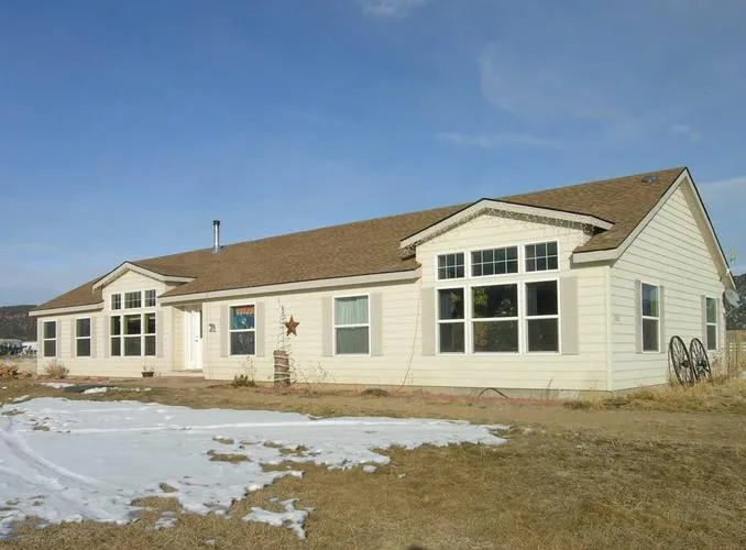 Salida, Colorado Horse Property for sale. Enjoy wide mountain views from this 2356 SF manufactured home on 3.45 acres. Nicely upgraded family space with 5 bedrooms and 2 baths. Big kitchen with center island and stainless steel appliances; Master suite features double sinks and garden tub. Drywalled throughout. Aug. well allows for outside watering of domestic animals. Shed for storage or tack. Fenced backyard. No covenants.