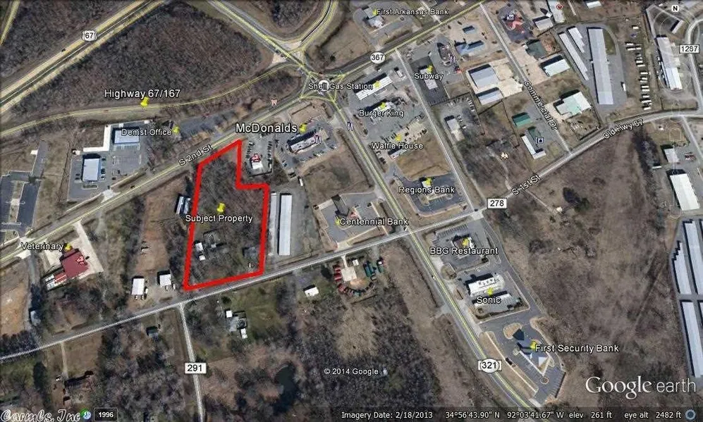 For more information, contact David Smith at (501) 551-1119. Visit http://www.crye-leike.com/littlerock/15010155 to view more pictures of this property. Unbelievable Commercial Opportunity....perfect location!! ....right behind McDonald's ... The property actually has frontage on Highway 367/2nd Street....and goes all the way to 1st Street.. Which gives you cross access!! High Traffic counts....surrounded by several Banks ,Restaurants and Schools.. This area serves as a bypass for the city of Cabot......will be a huge opportunity for high traffic ... not to mention the amount of land that is available...approx : 3.5 acres..