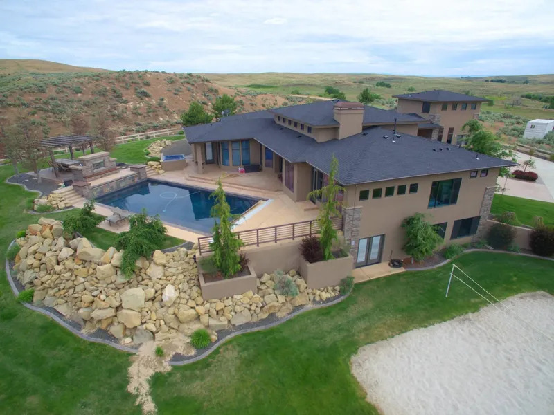 This incredible home is located outside the small agricultural community of New Plymouth, Idaho. New Plymouth is known as the world's largest horseshoe and still maintains its beautiful horseshoe shape with tree and grass lined streets that include 11 acres of common green space and parks. New Plymouth is home to the Payette County Fairgrounds and features several historical locations, including the Tuttle Blacksmith Shop. The town hosts several yearly festivals and events, including the Payette County Fair and parade and seasonal festivals.
