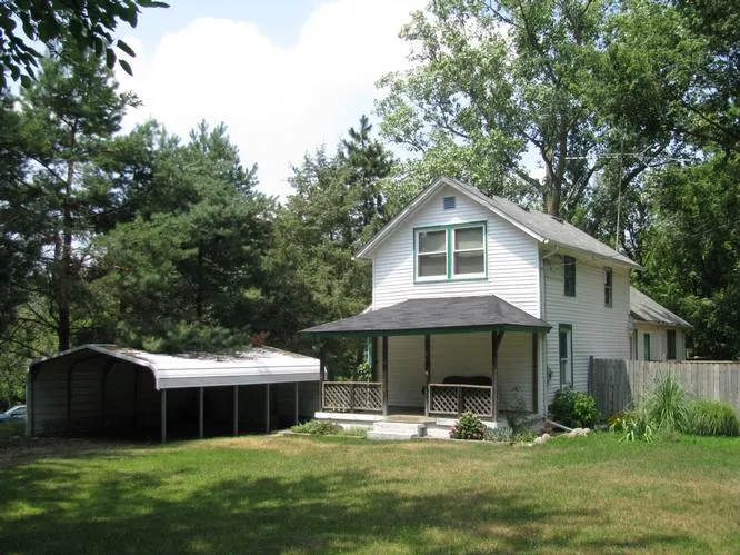 3.7 Wooded Acres! 2 story walkout with 12' x 23' cathedral ceiling living room with sliding glass door leading to the wood deck! Spacious 11.3 x 15.2 main floor master bedroom! Side wood deck was built in 2003. Newer laminate flooring in the kitchen and dining area. Carrier natural gas furnace. Reserved: Mirror in MBR, kitchen & living room curtains & valances and brown curtains upstairs. Included: stove, refrigerator and hot tub (was in working condition when last used 2 years ago). 2 car carport plus 1 car garage. You'll enjoy the walking trail in the woods! Convenient country location just west of 4th St. on the north side of the road.