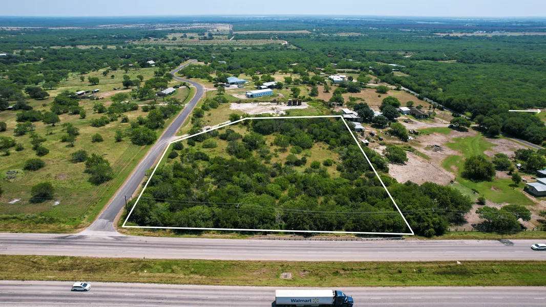 3.85 +/- acres located on the corner of Highway 281 and County Road 306, just minutes outside of George West. Approximately 400 feet of 281 frontage, and approximately 275 feet of road frontage off of County Road 306. Electrical lines run along both the highway and county road. The land is mostly South Texas brush, with a few open patches and a gentle slope toward 281. There is a wet weather creek that runs through the Southern corner of the property. Survey will be needed to determine actual acreage.