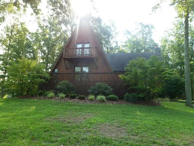 A-Frame home nestled in the woods with a full finished basement, 24 x 48 metal garage/shop with a 14 x 48 shed and 3.9 acres m/l. All this is located at 6980 Calvary Rd. (Hwy 208). Home has an entry foyer, 2 story living room w/stone fireplace, dining area, large kitchen with breakfast bar and large deck, utility room, master suite with full bath and double closets, also its own deck. Upstairs has open sitting area overlooking living room, 2 bedrooms with there own deck and full bath between the bedrooms. Basement offers large recreation room with a wet bar, den, bedroom, full bath and an outside entry. Outside has the land mostly wooded with a 24 x 48 garage/shop with a shed. Call listing agent Mike Howard for your viewing.