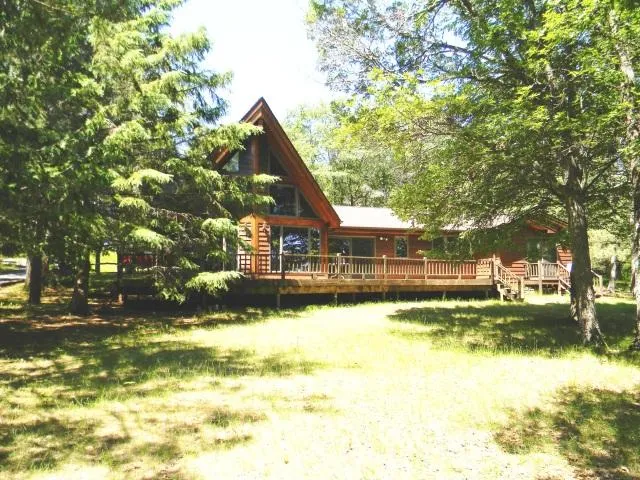 874587/46565 MINONG FLOWAGE. Plenty of room to enjoy both outside and inside. 230' of sandy swimming area and 3.9 acres of land. All your living on one level. Large home with open living and bar area, Kitchen and dining with snack bar, and rec room all done in pine, wood stove area, and a loft. Total of three bedrooms...one overlooking the living area. Wood floors shine throughout. Many windows to the lakeside. 30 x 40 pole building. Boat house at the water's edge. This one has room for all to enjoy lake living. $424,900.
