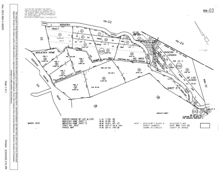 Great opportunity to build your dream home! This property includes 3 parcels of land totaling approximately 171,626 square feet. Located in the quiet and peaceful mountains of Modjeska Canyon, this property is close to town and has easy access to the 241 and 133 toll roads.