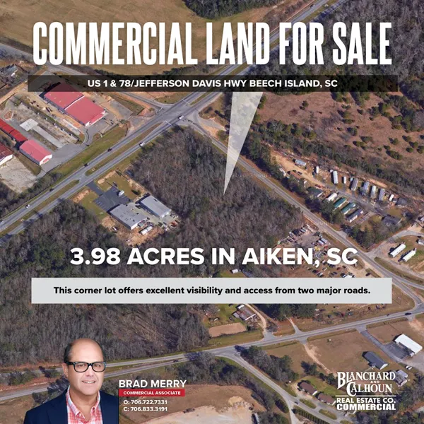3.98 acres of commercial land located at the corner of Jefferson Davis Highway (US-1)and Old Aiken Road Sin Aiken, South Carolina. This corner lot offers excellent visibility and access from two major roads.
