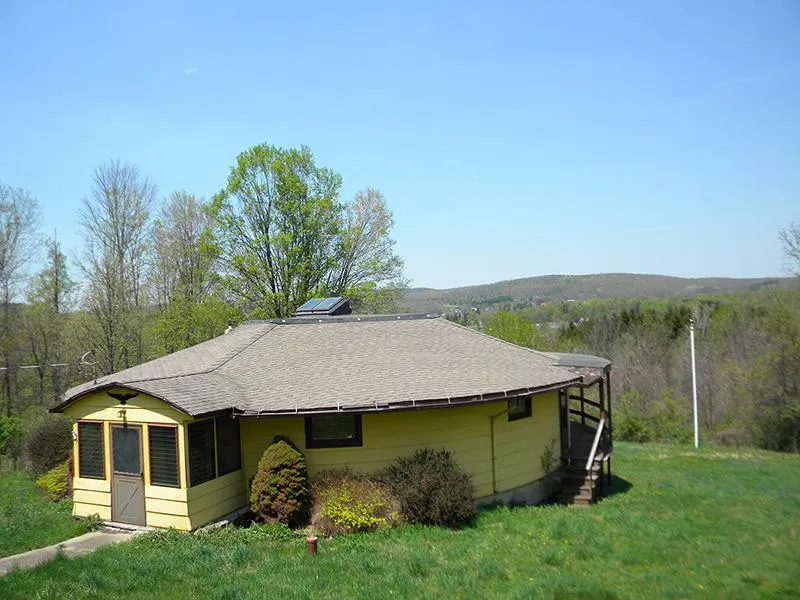 The wood framed, round house is one-of-a-kind and would be perfect for a large family to reside or use as a getaway for friends to gather or use for a hunting club. The house is built on a full basement and includes a large round center family room with skylight, 4 bedrooms, family room with brick fireplace, full bathroom, large eat-in kitchen, and office area. The basement includes another bathroom and is partitioned off into several rooms and includes a woodstove for supplemental heat.