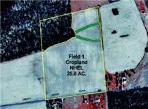 30 acres level ground. 25+/- acres tillable, 5+/- acres in woods.