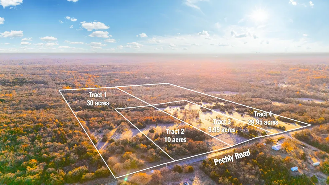 Beautiful homesite location with 30 acres available in one of Newalla's growing neighborhoods! An amazing tract of land in an established neighborhood off asphalt road (Peebly). Very peaceful setting with excellent mature variety of trees! There is another 30 acres available to the South as well for 60 acres total. List price is for 30 acres. Build your home on this excellent tract with mature woods with many deer and turkey. A private residential setting with excellent seclusion just 20 minutes to Norman/OKC and 3 miles S of I-40 and 4 miles SW of Kickapoo Turnpike! 10-15mins to Tinker AFB, Boeing, OK Heart Hospital, Grand Casion and Resort, Shopping, Restaurants, and Cinema! Seller has many tracts available, and builders are encouraged. Power is available at street and buyer can do private well and aerobic system. Power and Fiber ar located at front along Peebly. You can buy 10 to 80 acres here. There is a seasonal spring at half way point of property. Perfect homesite locations close to the road. This ~30 acres is 330' x 2600' (survey completed at time of escrow) and will be split from the parent tract zone RA SFR One-Acre Rural Residential District with OKC Lot application process. Property tax reflects parent tract and may increase for single site. GIS 35.33757, -97.21240. Tenant on site - Call Agent. Tract 4 and Tract C on Survey.