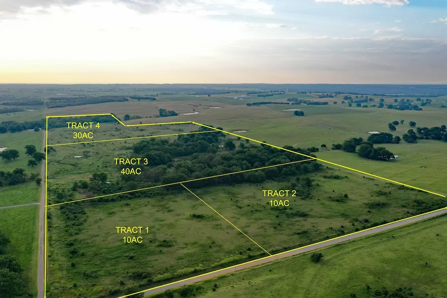 This listing is for Tract 4 of 4 tracts being sold. This tract is the East 30 acres and is L shaped. There is electric and water on the country road on the North side. This tract has has some great diversity with a about 30 ft of elevation change to create a wonderful place to build a home overlooking the pasture below. There is also about 5 acres of woods with a creek and a pond that should hold plenty of deer. Located off a dead end road, you will have plenty of privacy. This location is approx 25 miles from the new American Heartland Theme Park and Resort that is currently in the planning stages. Give us a call to view this property today!