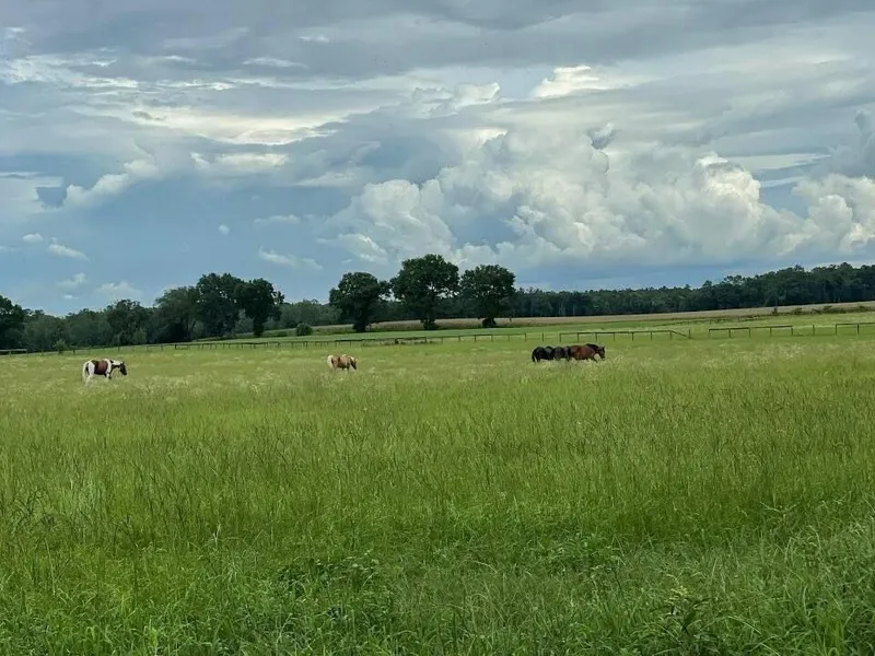 30 ACRE HOMESTEAD- RARE FIND - HIGH AND DRY - NOT IN A SPECIAL FLOOD HAZARD AREA! LUSH, GREEN, ROLLING PASTURES - RANCH AND/OR FARM READY. Existing homesite with two wells, septic, and electric! Fiber internet readily available. This beautiful property consists of two parcels, an 18.73 acre parcel and an 11.27 acre parcel hosting the homesite and a 36 x 74/approx. 2700 sq. ft. Barn, with a tongue and grooved facade, complete with two tack rooms with locking doors and concrete floors. The barn hosts 3 large stalls and 4 standard stalls, with 2 x 6 woodwork for solidity and easy expansion. Fiber internet available to this property. There are two private driveways, one in the middle (between the two parcels) and one on the right side leading to the homesite. There is an existing Manufactured Home that will need to be removed (burnout). This ranch-style homestead beckons for a new owner's vision, bringing plans and dreams to reality! The perfect setting for a pristine ranch and generational homestead. Its natural beauty is capped off with just enough majestic large oaks for true character, spotting the slightly rolling hills. Completely settled in a quiet, agricultural setting and accessed totally from paved roads (county road). While quaintly settled, it is just minutes away from multiple public boat ramps for the Suwannee River. It also provides convenience to the Gulf and surrounding towns. Don't miss out on this rare opportunity to own a well-established gem! Call today and make your vision a reality!
