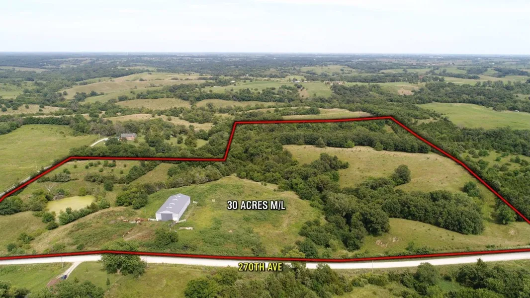 Presenting 30 acres m/l in Lucas County with large Morton building. This property offers scenic views and timber draws. The 60' x 90' "like new" Morton building features partial cement floors, 16 foot side walls, electricity and water. Great acreage potential close to town.