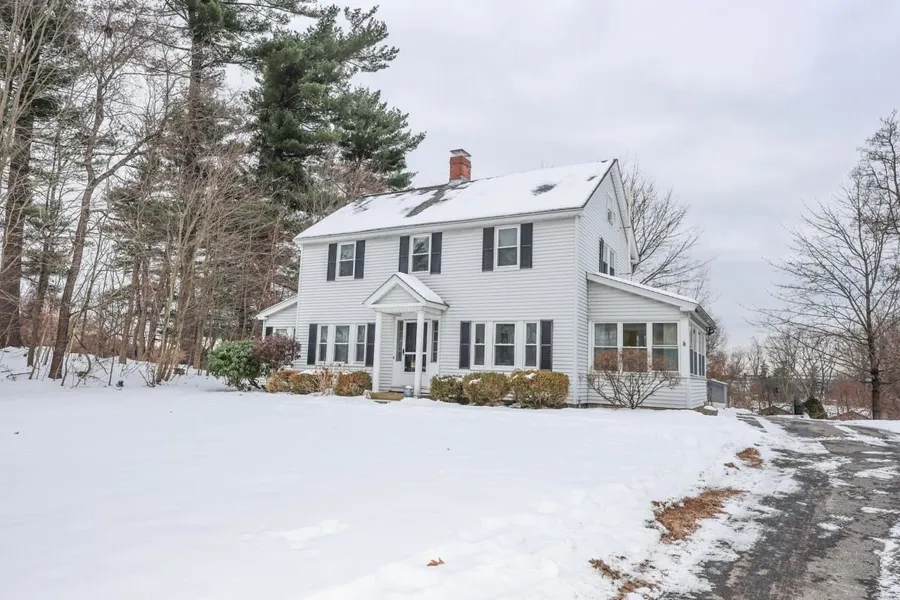 Welcome to this exceptional 3 bedroom, 2 bath Colonial set on a large 34,804 sq. ft. lot in desirable Hudson, NH, a rare blend of classic charm, thoughtful updates, and flexible living space. Step inside from the handicap-accessible rear ramp and deck into a front-to-back living room featuring a gas fireplace and adjoining den, perfect for comfortable everyday living or entertaining. The first floor offers a spacious full bath with a handicap walk-in shower, ideal for multigenerational living or aging in place. The eat-in kitchen with open dining area is bright and welcoming, complemented by a mudroom entry that adds everyday practicality. Enjoy year-round relaxation in the attached sunroom, a perfect spot to unwind while overlooking the expansive yard. Upstairs, you'll find three generously sized bedrooms and a full bath. The primary bedroom includes a walk-in closet and a private staircase to the finished room on the third floor a standout space filled with natural light, abundant windows, and seasonal views of the Merrimack River. Ideal for a home office, studio, or bonus living area. Outside, the property truly shines with a two-car detached garage and a greenhouse a shed in the backyard, offering endless possibilities for hobbyists, gardeners, or extra storage. The large lot provides a peaceful setting rarely found. A well-maintained home with timeless Colonial appeal, accessibility features, and unique extras, this is a must-see property in Hudson.