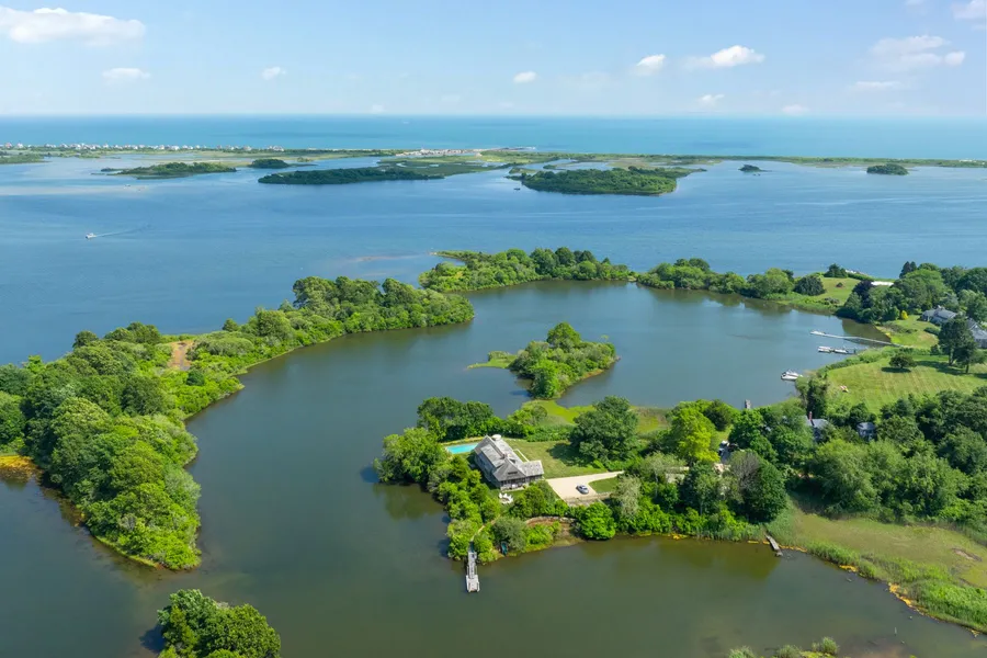 Welcome to a breathtaking private compound in Arnolda Colony on Ninigret Pond known as Alligator Point . This traditional modern home was designed by Boston's Noury-Ello Architects and impeccably built to capture privacy and sophistication with a seaside charm. The home is situated on an almost three-acre peninsula surrounded by views of Ninigret Pond each telling a story depending on the time of day. The layout is simple, but sleek and with a warm sense of coastal cozy. The original 1938 design was adopted in the new construction, creating singular views in every room of the home. The kitchen is full of modern conveniences you would expect, high-end stainless appliances, custom cabinetry, pantry and adjacent service quarters. The dining room, kitchen and study all surround the living room and its central wood burning fireplace making it truly the heart of the home. The first-floor master along with a guest room boast oversized en-suite baths and share equally stunning views of the landscape and water. There are two additional bedrooms on the second floor, each with an ensuite bath, along with an exercise/yoga studio overlooking the pool. The cozy screened porch with amazing panoramic views abuts the stunning spa like retreat around the pool. A guest house tucked away in the expansive perennial gardens serves as a bunk room or a peaceful study. This magical oasis surrounded by water views, private dock, tranquil sunsets all with the utmost privacy should not be overlooked
