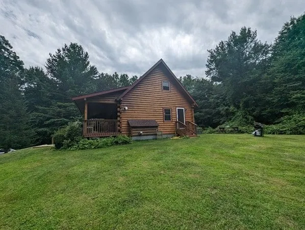 Hidden LOG CABIN resort on 6 acres! Wow! One of a kind, hard to find home that you won't want to miss! Stunning entry from oversized porch into cathedral living area. Main BR/BA could be the entire top floor. The 2nd floor open balcony area has many uses. Gorgeous home has been meticulously cared for! New granite counters, sink, pool liner & pump, generator switch & pellet stove heats the entire house. 2 BRs/bath on 1st floor. The yard space all around the home can easily be expanded into the surrounding woods. Garage under. This home can not be seen from the road. 8" logs construction mean extra inIn the winter, when leaves are off the trees, you will have a view of Baker Pond, that is very close to the property line. Easy access to all schools, shopping & highways from this location close to the Dudley line. Mow the lawn naked here, if that's what you'd like to do. Title 5 repair done & system passes. Occupancy preferred in October. Don't drive down driveway w/o appt!