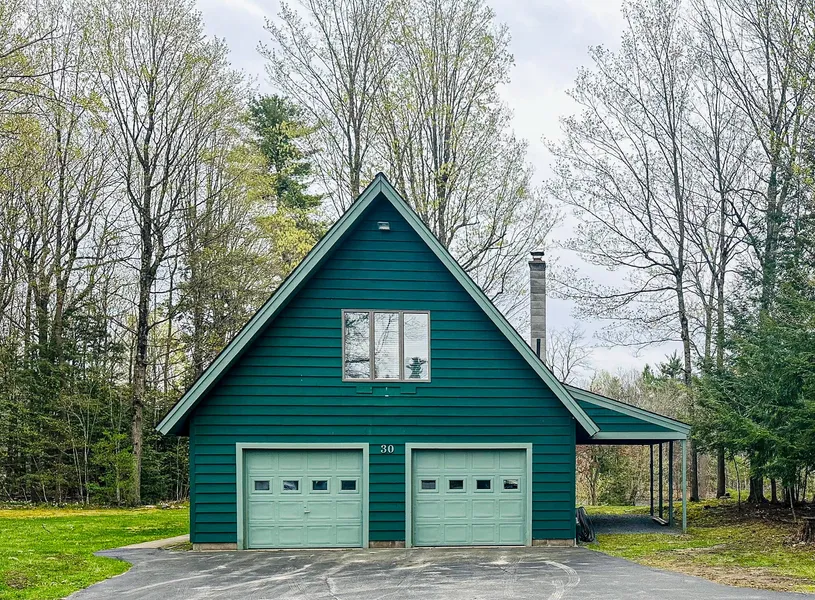Tucked away on a quiet residential street, this hidden gem offers the perfect blend of tranquility and character. Nestled on a beautifully wooded lot along the river, this well-maintained A-frame home is a true retreat for those seeking privacy and natural beauty. Step inside to discover soaring vaulted ceilings, sky light windows, stunning custom woodwork, and a cozy loft space that adds charm and versatility. The brand-new modern porch provides the ideal spot to unwind and take in peaceful river views—perfect for morning coffee or evening sunsets. The spacious garage features a dedicated workshop area, ideal for hobbyists, mechanic enthusiast, or anyone needing extra creative space. Whether you're relaxing indoors or enjoying the serene outdoor setting, this home offers a one-of-a-kind living experience. Usable River frontage.