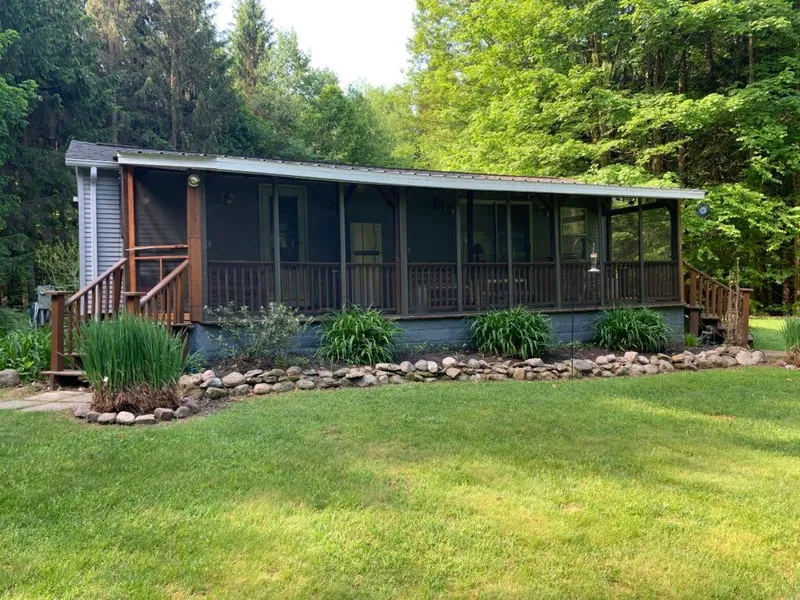 There is an established driveway that funnels through the forest into this amazing private setting. Large yard for entertaining family and friends. The property includes a deeded easement with egress and ingress from the town road.
