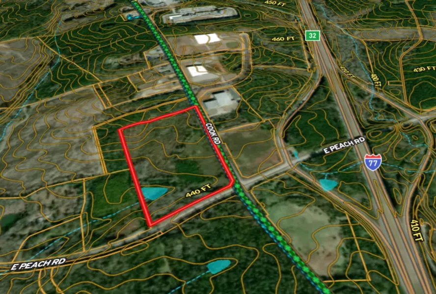 Research Parcel InformationFrom I-77, take Exit 32 (Peach Road) and travel West .3 miles to the intersection of Cook Road and Peach Road the property is located at this intersection.