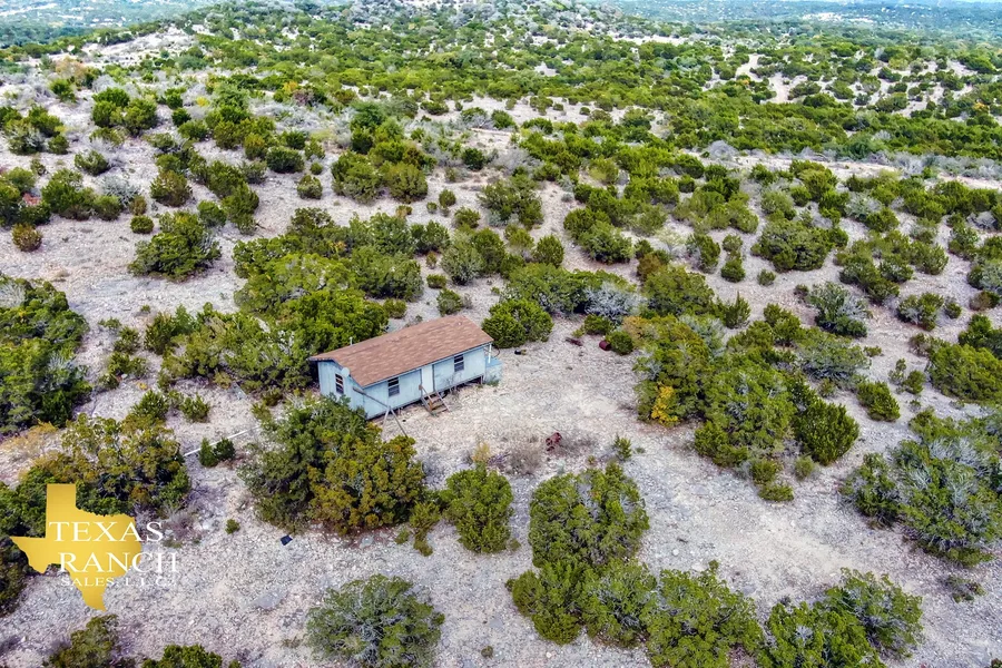 The ranch is primarily raw hunting land bordered with low fencing. There is a 512 square-foot cabin with a rainwater collection system. Additionally, there are two water storage tanks that landowners can draw water from provided by the property owners association.
