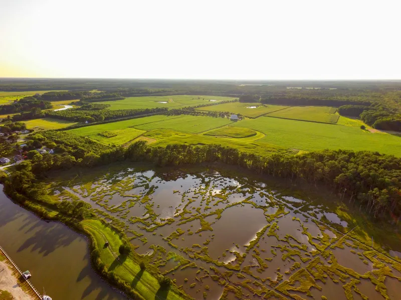 Scarboro Creek Farm is Comprised of 300 acres along Marylands Chincoteague Bay. The farm has been managed for wildlife for nearly ten years and currently offers a quality mix of waterfowl, whitetail, and turkey habitat. Annually the farm has fields planted with sunflowers, managed food plots, and plant flood impoundments. The structures built on the farm were well thought out and include a residence, guest house, barn with an apartment, and a rustic waterfront cabin.