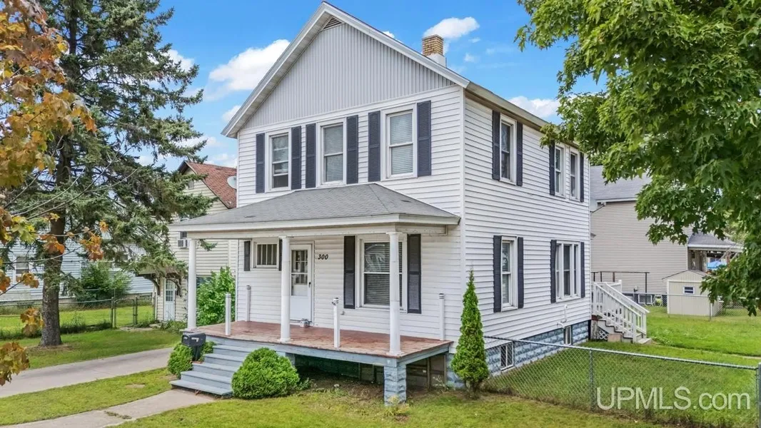 Charming 3 Bedroom with 1.5 Bathrooms Home is ready to Unlock Your Potential – Ideal Starter Home or Investment Opportunity! Discover charm, comfort, and opportunity in this delightful home located close to Escanaba's Downtown. From the moment you step inside, you'll appreciate the character of hardwood floors, elegant crown molding, and a beautifully crafted staircase that adds a touch of classic appeal. The main floor offers a spacious living area, a formal dining room, a functional kitchen, a convenient half bath and small mudroom—perfect for everyday living and entertaining. Upstairs, you’ll find three comfortable bedrooms and a full bathroom to meet all your needs. The full basement, complete with a poured foundation, provides plenty storage. Step outside to a large, fenced-in backyard with a storage shed—ideal for outdoor activities, pets, or gardening. Enjoy your morning coffee or evening unwind on either the Front or Back Covered Porches. Don't miss your chance to see all this home has to offer—schedule your private showing today!