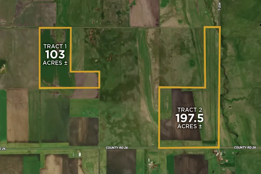This auction presents a rare opportunity to purchase 300.5 acres of diverse, income-producing land in Tanberg Township, Wilkin County, MN, just west of Rothsay. The offering consists of two tracts featuring high-quality tillable ground, lush alfalfa, and wildlife-rich CRP and grassland habitat.