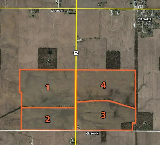 General Location: 0.75 mile southwest of Sedalia in the northeast and northwest corners of the intersection of Hwy 75 and CR 800 N.