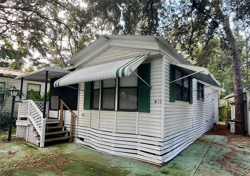 Own both the home and the land with this charming 1-bedroom mobile home, perfectly nestled in a peaceful community surrounded by mature landscaping. This home features an open kitchen with plenty of cabinet space and laminate flooring throughout, offering a clean and modern feel. A shed provides extra storage, while concrete covering 90% of the lot means low to no exterior maintenance. Enjoy central air conditioning and heating for year-round comfort. The community offers convenient amenities, including an on-site condo office, convenience store, and professional management and maintenance of the grounds. Ideally located just 35 minutes from Disney, 1 hour to Cocoa Beach, and close to highways, shopping, and dining, this property is perfect as a full-time residence, vacation getaway, or investment opportunity with short-term rentals allowed. Don’t miss out on this affordable home with great potential in a beautifully landscaped setting!