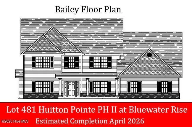 Presale ''Bailey'' floor plan in the Hutton Pointe phase at Bluewater Rise. Builder offering up to $10,000 buyer's closing cost incentive w/ use of preferred attorney & lender! This large floor plan has 4 Bedrooms, 3.5 baths. & nearly 3,600 heated square feet. Features include a 1st floor master bedroom suite w/ 3 additional upstairs bedrooms, a loft, & bonus room w/ closet Granite counter tops in kitchen. Breakfast bar & nook that leads out to a covered back porch. Creekside school district!