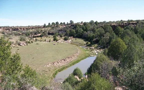 Terrain: Approximately 75-80% of the ranch has an open rolling terrain. The east boundary of the ranch is a deep canyon rim along the edge of the Canadian River. 20-25% of the ranch becomes rocky canyon drainage areas that flow to the Canadian Canyon. The canyon areas have a canopy of juniper, pinon and ponderosa pine, offering good winter protection and excellent wildlife habitat.