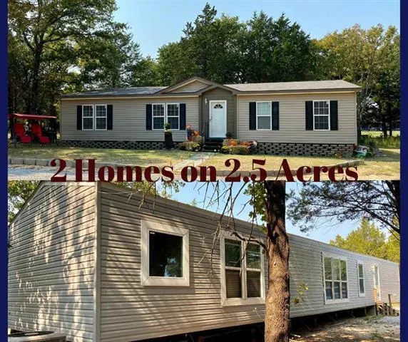 PRICE REDUCED! Have you always dreamed of finding a pretty piece of land one day with lots of trees, clearing out the ones you dont want, and making it your own little private retreat? With this place, all the hard work has been done for you. Selected trees have been cleared, water well installed, septic systems in place, storm shelter, and shop have been built. This unique property offers not ONE but TWO 2018 Clayton mobile homes with modern open floor plans nestled on 2 wooded acres in Dickson, OK. The doublewide mobile home, with 2,200 sq ft offers a beautiful view from both the front and back windows, offering an abundance of natural light. It has four spacious bedrooms/ 2 bathrooms, and the master bathroom has a corner soaking tub, large tiled shower, two closets, and double vanities. The living room has an electric fireplace providing a nice cozy feel on those winter nights, a kitchen island, lots of counter space, and a dining room area. Have family or friends you want to close to you but not TOO close? Well...with this place, they can have their own private residence and only be a stone's throw away. The single-wide mobile home has its own mailing address, but it also resides on the same property. It is 1,680 square feet offers 3 bedrooms and 2 full bathrooms. It also has an open floorplan with a kitchen island, dining area, laundry room, and has a nice modern feel. Save yourself the time of trying to do it all on your own and come take a look at what this place has to offer. You will be glad you did. Additional information: Water well has 2 pumps, Doublewide is on an aerobic septic system, singlewide has its own septic tank and grey water feeds over the aerobic system, both properties have separate electric meters, 2 car metal garage/shop building with carport, storm shelter, and both homes are both total electric.