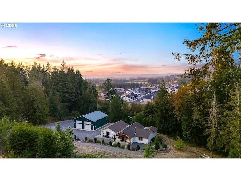 ESTACADA CUSTOM HOME & WORKSHOP PROPERTY! Right-Sized Custom Home (2,252 SF) + Professional Workshop (1,920 SF) + ADU Potential on 5.3 Private Acres. Space where you need it. This property redefines what matters: a thoughtfully designed 2-bedroom custom home with professional-grade workshop on private acreage. All the room you'll use, none you won't. Finally, have space for your projects, hobbies, and passions! A 40x48 shop has 200-amp electrical, 50-amp RV hookup, two 16-ft roll-up doors, concrete floors, & loft storage. Whether you're woodworking, restoring classics, storing your RV and toys, or running a small business, this is the space you've been looking for. The home is a custom 2017 single-level design that makes life easier. Vaulted ceilings make you feel like you have room to breathe. The kitchen with granite counters and large island, everything opens to light-filled living area. The primary suite glows with a marble vanity, heated tile floors, walk-in closet, and French doors to the large covered patio. The second bedroom and full bath provide privacy for guests or family. And the media room is ready to become a 3rd bedroom if life changes. Wide hallways, 3-ft doors, and thoughtful layout throughout. Additional opportunity awaits with a county-approved 900 SF ADU. Multi-generational flexibility, guest house, rental income, or studio space. On the 5.32 acres a private pond, Currin Creek, territorial views, and mature trees provide the backdrop for this property. Enjoy nature without the work of managing a large property! Just minutes to town conveniences and 30 minutes to Portland metro, yet feels completely private. No HOA, no restrictions. For those seeking quality design, functional space, workshop freedom, and land to enjoy, this is intentional living.