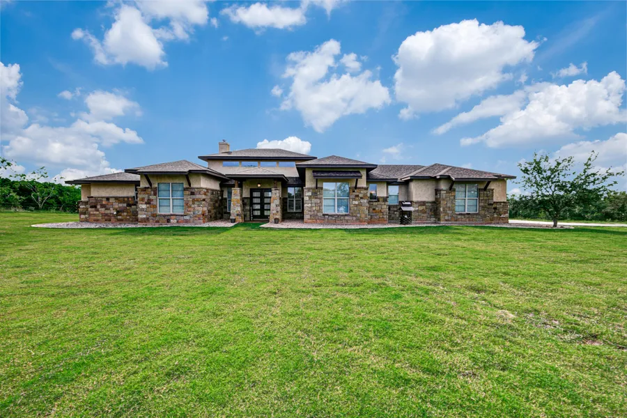 ONE OF A KIND CUSTOM HOME on 50 ACRES! Enormous Master's Retreat with a 12'x13' walk-in closet. The Master Bath will feel like you're in a spa with the focal point being the center jacuzzi tub against a rock feature wall. His and Her separate vanities and dual entry into the walk-thru double shower. The Living Room is open and spacious with a high 17' ceiling, rock fireplace and multiple windows for lots of natural light. The Gourmet Kitchen has a breakfast bar AND separate island. The cooktop is in a custom rock alcove with stainless steel range hood. The granite counter space is amazing, as well as the custom cabinets and walk-in pantry! The large Dining Room has multiple windows to the covered patio and backyard. The 2nd Bedroom and Guest Room both have recessed ceilings, and the Guest Room also has an ensuite and walk-in closet. The 3rd full bathroom is located between the Office and 2nd bedroom. The Outdoor Living Space is a 37'x18' covered patio with fireplace, stained concrete floor and looks over the grassy backyard and rock fence. 40x70 metal building and 30 x 40 barndominium with 1200 sq ft living quarters. Barndominium also Custom Built, with 2 bedrooms, 2 full bathrooms, kitchen and living room. Cattle pens and barn complete this GORGEOUS RANCH!