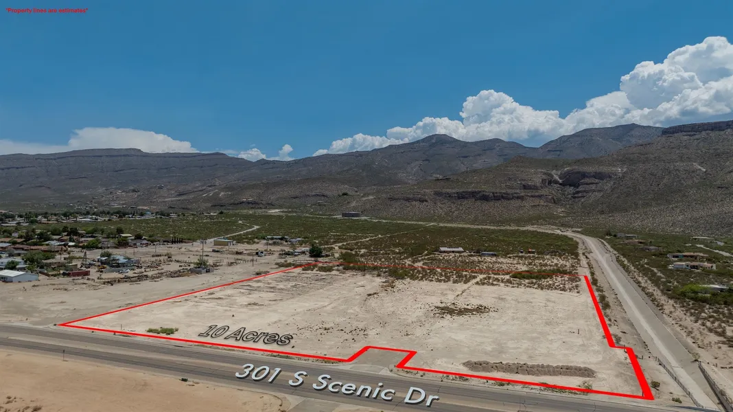 Prime 10 acre lot nestled at the base of the Sacramento mountains with great views of the mountains, sunrises and sunsets. Could possibly be for commercial, residential or special event center. It has 632 ft frontage on south Scenic Drive with curb and sidewalk. It has been cleared and is not in a flood zone. Numerous possible uses. Close to hospital, shopping and schools. Call for more details!