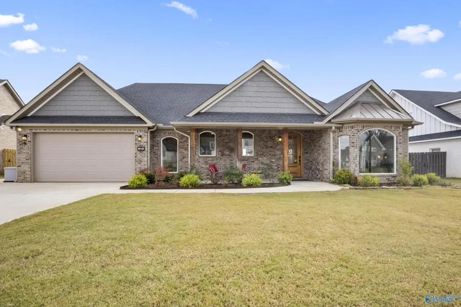Beautiful single-level home with pool and exceptional outdoor living! Extended driveway, two-car garage, and fully fenced yard with flat grassy area behind the pool ideal for play or pets. Enjoy the covered rear porch with fans, TV, and space to entertain a crowd. Weather any storm with whole home generator and interior storm shelter/safe room. Custom built with care given to layout and finishes: wood floor, granite, tile, fireplace, bath fittings, split floorpan, light and bright with oversized windows in every room. Live, work, relax, entertain and enjoy life in your own oasis. Convenient to HSV, Decatur, I-65, Publix, Tennessee River, and all the best of North Alabama.