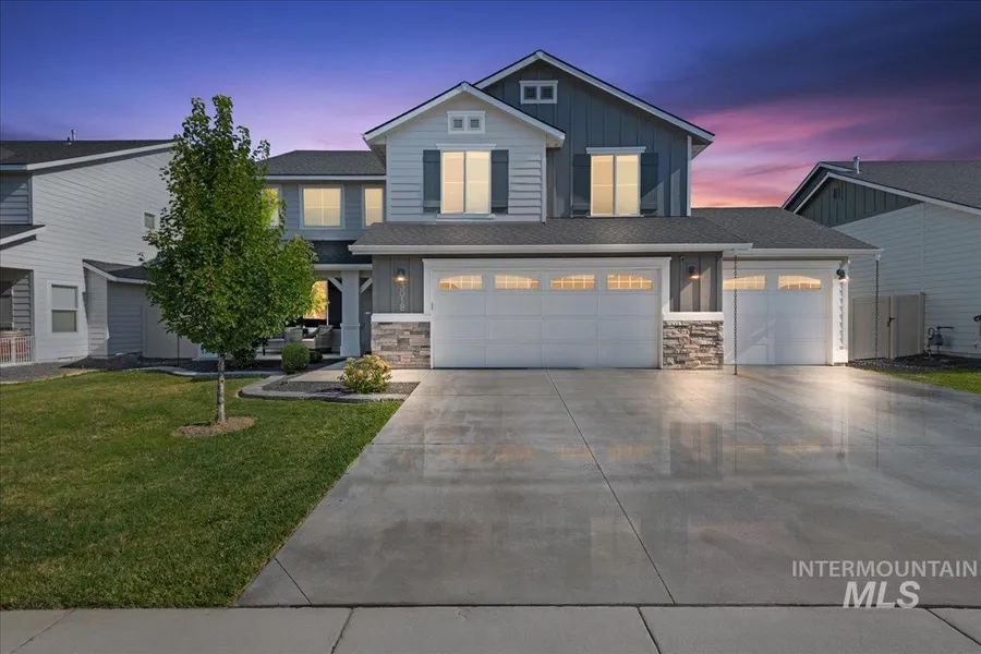 Say HELLO to your new HOME! Step into soaring ceilings and stunning picture windows that flood the living room with natural light. This bright and spacious layout flows effortlessly into the dining room, family room, and kitchen - featuring a large island perfect for gatherings. A powder room sits conveniently next to the mudroom and the generous 3-car garage. Upstairs, you'll find two bedrooms, a full bathroom, a versatile bonus space(currently set up as an office), a laundry room, and a luxurious primary suite with a large walk-in closet, dual vanities, a garden tub, and a separate shower. Enjoy outdoor living with a fully fenced backyard, extended patio, and included storage shed. Centrally located near schools, parks, and shopping. New pickleball court coming soon. This HOME is ready to be YOURS! Be sure to check out the virtual tour, aerial photos and iGuide links!