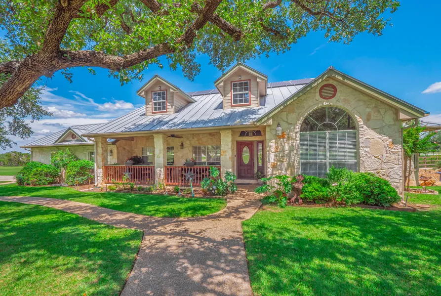 Welcome to this stunning 4-bed, 4-full bath and 2-half bath home, set on an expansive 3.71-acre property - a custom home built by the sellers. Situated in the superb Comal Independent School District. With 4146 sq ft of living space, this home offers a perfect blend of luxury and comfort for your family. This house boasts great curb appeal and an open floor plan that invites you into a bright and airy atmosphere, highlighted by a cozy fireplace in the living area. Gather in the family dining room or enjoy meals in the kitchen, complete with a central island and a breakfast nook. For those who love to entertain, there is a large Game Room with a nice Kitchenette with a good size serving bar top for family and friends gathering. Convenience meets elegance with all bedrooms located on the main floor, including a spacious primary suite featuring two primary closets for ample storage. Two of the bedrooms share a Jack and Jill bathroom, each equipped with walk-in closets, offering both practicality and style. The loft provides additional versatile space, perfect for a home office, play area, or relaxation space, and includes a convenient half bath, while the balcony offers a picturesque view of the stunning pool. Step outside to your personal oasis. The covered patio leads to a beautiful pool with a waterfall feature and spa, perfect for relaxation and entertainment, and a ranch fence that encloses the pool and backyard. Parking and storage are a breeze with both attached and detached 2-car garages. One of the standout features of this home is the independent lawn mower garage attached to the detached garage with 2 overhead doors for entry and exit. Enjoy energy efficiency with fully paid-off solar panels. The home is also equipped with two AC units, one 2 years old and the other 4 years old. The septic system, ideal for a 4-bedroom home, was recently pumped in December 2023, adding to the ease of maintenance. Neighborhood amenities include a park and tennis courts, enhancing the overall lifestyle experience. Don't miss out on this immaculate property that offers everything you've ever wanted in a home.