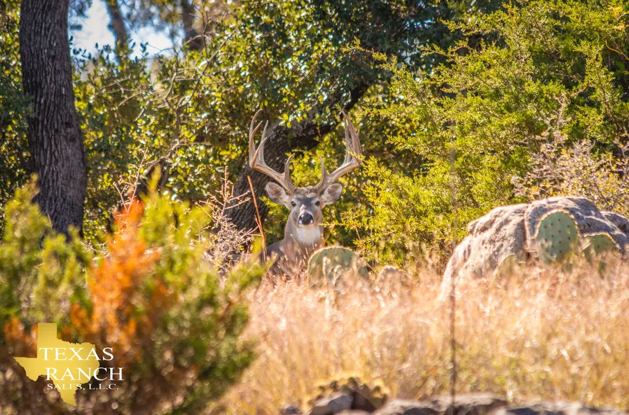 This private and secluded property is covered in beautiful oak trees. There are numerous trails that cut through the trees and brush to provide open areas for wildlife or livestock. Moreover, this ranch has a wildlife exemption in place. Sizeable axis and whitetail deer, black buck, dove, and turkey can all be spotted on the ranch. Furthermore, numerous hunting blinds and feeders are set up, offering great hunting from strategic locations across the property.