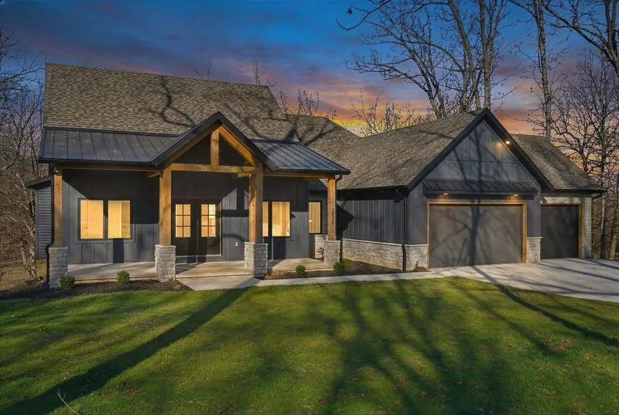 Stunning New Construction Country EstateDiscover the perfect blend of modern luxury and rustic charm in this brand new 5-bedroom, 3-bathroom country retreat. Nestled in a serene countryside setting, this thoughtfully designed home offers the space and sophistication today's families crave. Spacious Living for Every LifestyleThe heart of this home features an open floor plan that seamlessly connects the main living areas, creating an ideal space for both daily life and entertaining. Beautiful luxury vinyl plank flooring flows throughout the main level and master bedroom, providing durability and elegance. The kitchen showcases a generous island perfect for meal preparation and casual dining, complemented by a walk-in pantry that ensures ample storage for all your culinary needs. Character-rich ship lap accents add warmth and texture throughout the home, while the stunning stone fireplace serves as a captivating focal point in the living area. A welcoming covered front porch provides a charming spot to enjoy morning coffee, while the back deck offers additional outdoor living space for grilling and relaxation. The master bedroom offers a private sanctuary with direct access to the spa-like master bathroom. Here, you'll find a custom tile walk-in shower alongside a elegant free-standing bathtub, creating your own personal spa experience. The thoughtfully designed laundry room connects directly to the master closet for ultimate convenience. Every bedroom and living space features generously sized closets equipped with custom wood shelving units, ensuring organized storage throughout the home. The additional office space provides the perfect work-from-home environment or can easily adapt to your family's changing needs. Versatile Basement and Garage SpaceThe walk-out basement design maximizes natural light and provides easy outdoor access, while the unfinished storage area offers endless possibilitie