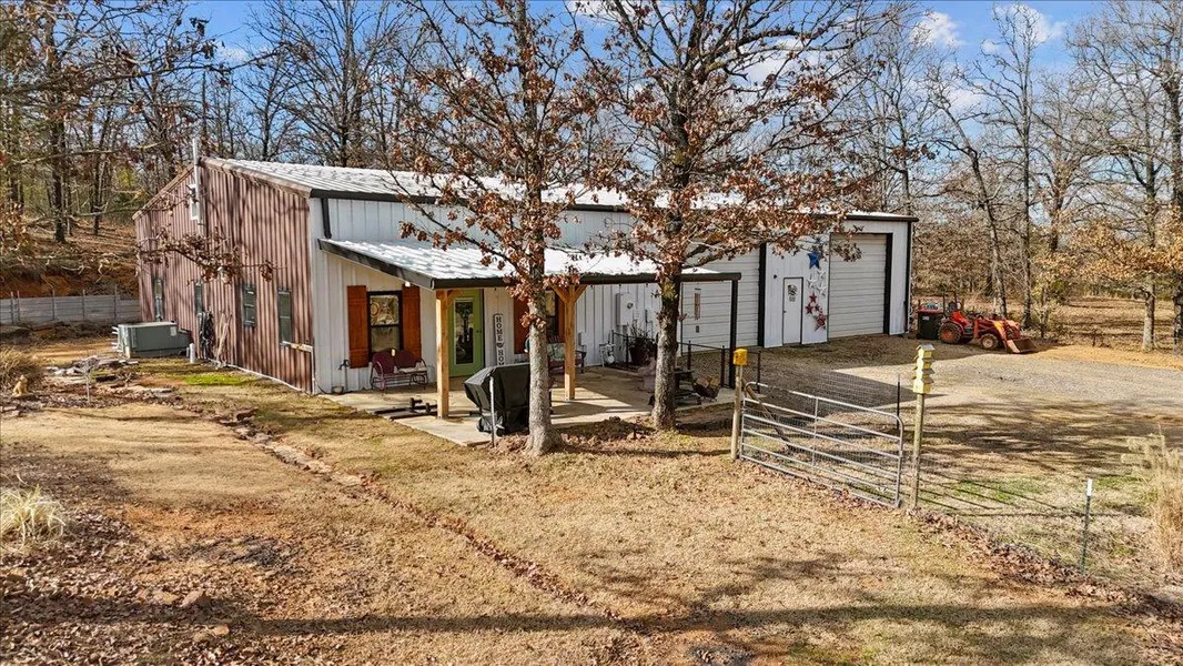 This property is a true Barndominium dream, situated on 1.77 acres. It features a spacious living area of 1,250 square feet, which includes two bedrooms, an extra-large bathroom, and laundry room. The shop is equipped with a half bath for added convenience. The thoughtfully designed floor plan allows for future expansion, with the option to add a second floor if needed. The home exudes a cozy atmosphere that is often missing in other barndominiums. Both the home and the garage are plumbed for radiant heat flooring (not currently connected). The building's walls consist of 8-inch purlins with additional 2x6 framing, creating a well-insulated space. Now let's talk shop! It boasts an impressive 2,500 SF 50X50, and is fully heated and cooled. It features a thermostatically controlled gas furnace and two larger mini-split systems specifically for heating and cooling the shop area. The living space has separate central heating and air conditioning. The shop is equipped with an indoor water hydrant and a specialized drain on the floor, making it easy to pressure wash your vehicle inside. The concrete flooring in the shop was poured extra thick, with an average thickness of 8 inches. The building has 14-foot sidewalls and two 12-foot electric garage doors. The building was manufactured by Premier Building Systems, providing great quality. The exterior is perfect for entertaining, featuring a covered patio and a 24-foot round above-ground pool with decking. The entire property is fully fenced and includes trails and walking paths with beautiful landscaping. Providing nice privacy on a dead-end street with no through traffic. The location offers quick access to Fort Smith, making it both convenient and desirable. This property is a gem and won't last long. Schedule your appointment today!!