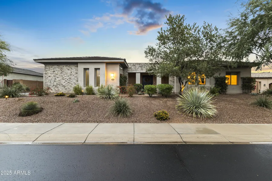 This Montevista former model shows exceptional finishes. Stunning resort-style living with expansive indoor/outdoor flow. Bright, oversized kitchen features floor-to-ceiling lighted cabinetry, an impressive 12' center island with gourmet sink, seating for casual dining, Wolf appliances, gas cooktop, double ovens, and a walk-in pantry. A dedicated bar area off the great room offers temperature-controlled wine storage, beautiful cabinetry, sink, and generous counter space. The adjacent dining area is open yet private, showcasing serene courtyard views. An additional bonus room off the great room. The great room is anchored by a floor-to-ceiling tiled gas fireplace with hearth and captures sweeping views of the oversized backyard-complete with heated pool and spa, bench entry shelves, built- in BBQ area and multiple furnished outdoor living spaces. Enjoy outdoor dining, several conversation areas, including a fire-pit. An additional bonus room off the kitchen leads to the guest bedrooms and the outdoor firepit. The extraordinary laundry room holds a large island and wall-to-wall cabinet and additional refrigerator/freezer. Two en-suite guest rooms feature designer baths w/ fully tiled in glass and porcelain. A chic powder bath showcases a floating vanity. The extra- large primary suite includes a freestanding soaking tub, expansive walk-in shower, extended dual vanities, dedicated makeup/dressing area and two oversized walk-in closets. Double doors lead to a generous private study/home office with peaceful courtyard views. The gated entry courtyard provides access to the detached casita, offering a stylish living area with TV, private bedroom, host bar with under counter fridge and sink and a private bath-an ideal en-suite retreat. A deep 3-car garage provides excellent storage options. No carpet/ tile flooring throughout.